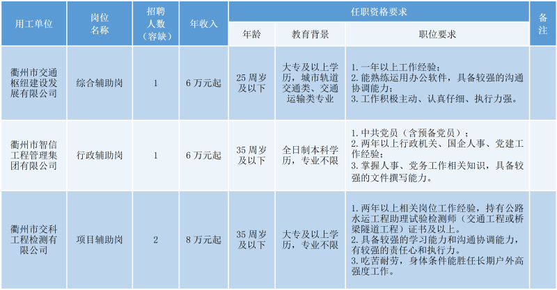 衢州衢通控股集團(tuán)有限公司因工作需要,現(xiàn)面向社會(huì)公開招聘4名勞務(wù)派遣人員,具體內(nèi)容公告如下: